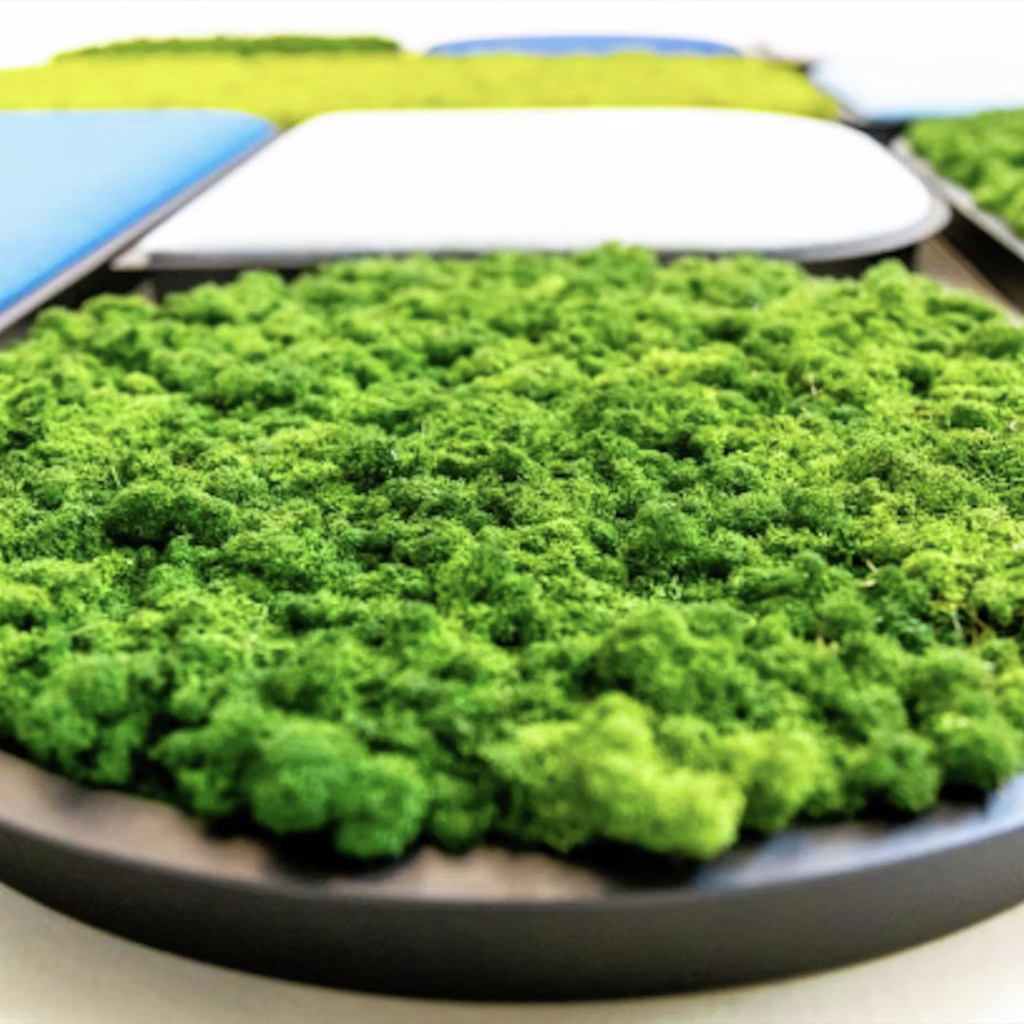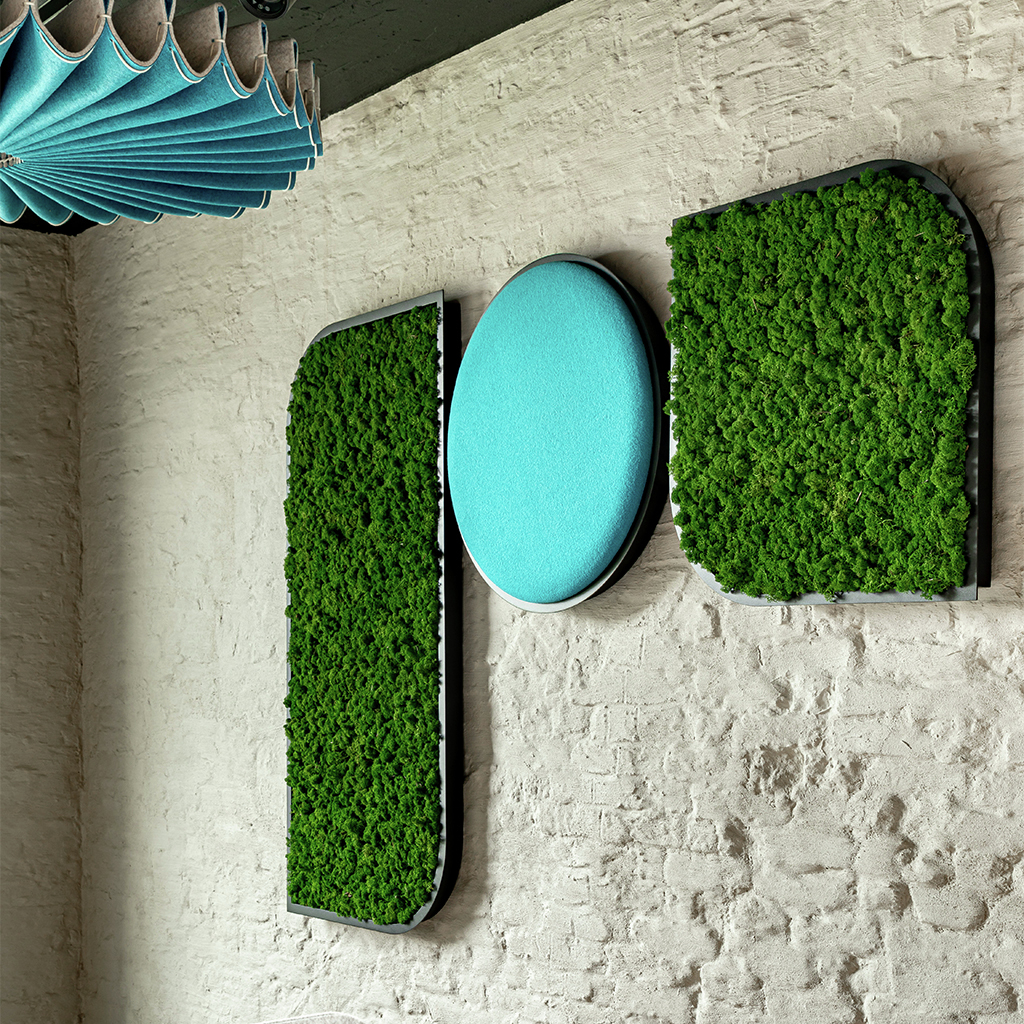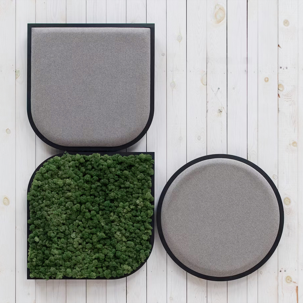 - Akustikabsorber aus Rentiermoos oder mit Stoff bezogen