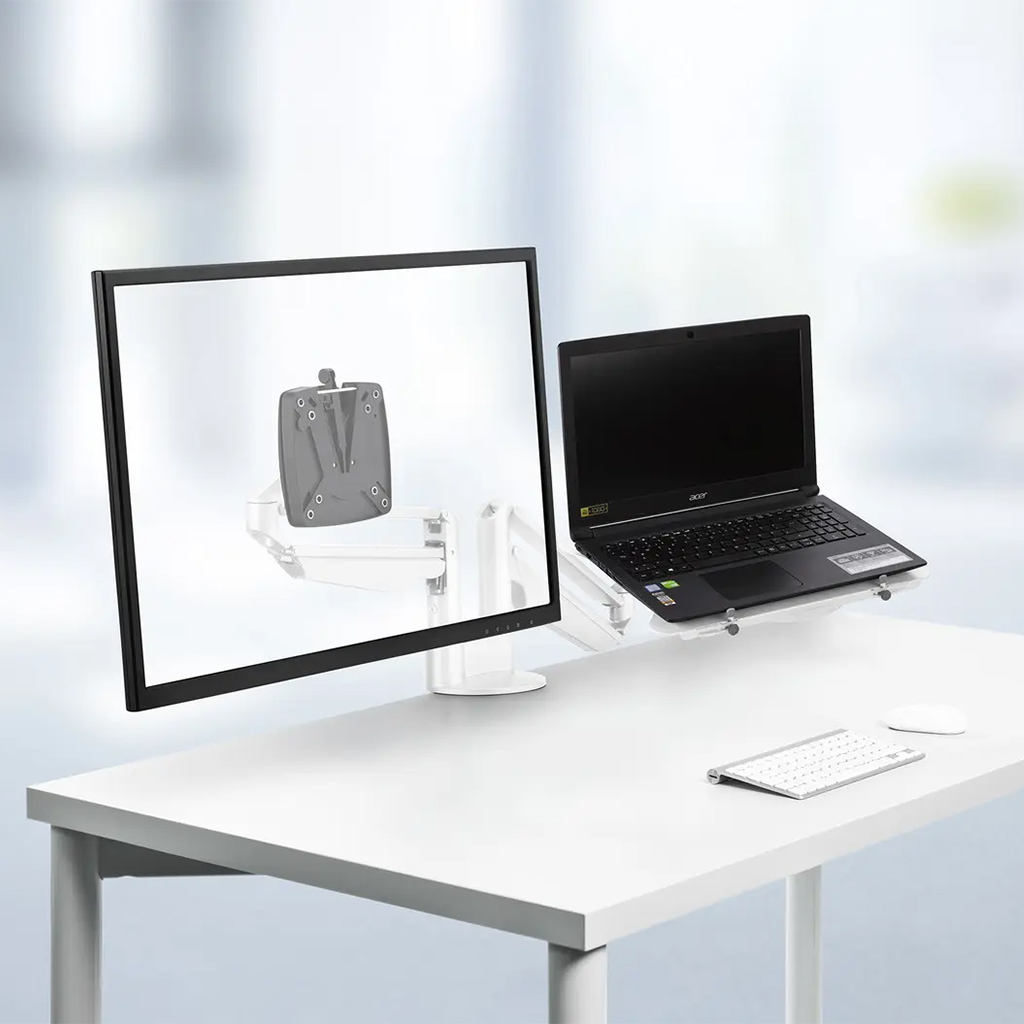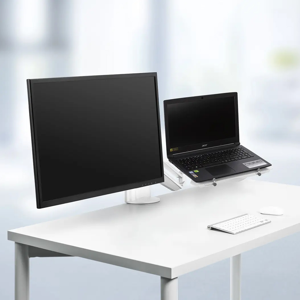 Monitorarm Novus Clu Duo mit Laptophalter , Weiß