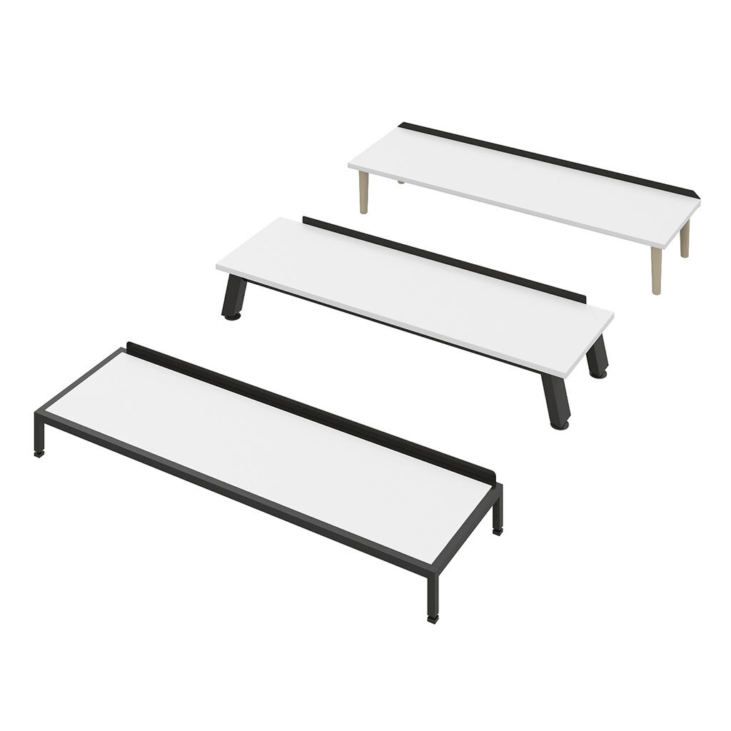 - Drei verschiedene Sockelausführungen aus Holz und Metall