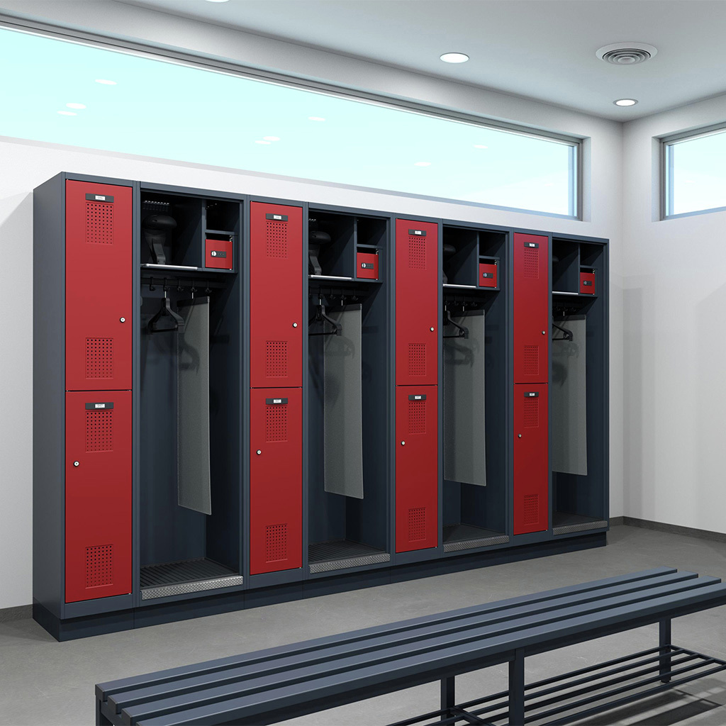 • Querrollladen: Flexible Kunststoff-Rollladen, die sich horizontal öffnen (zur Seite rollend). Sie sparen Platz seitlich und vor dem Schrank. Ideal für schmale Gänge.