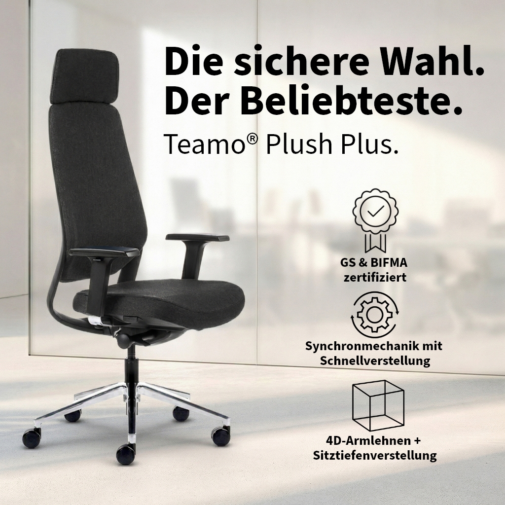 Bürodrehstuhl Inwerk Teamo® Plush plus schwarz mit Nackenstütze
