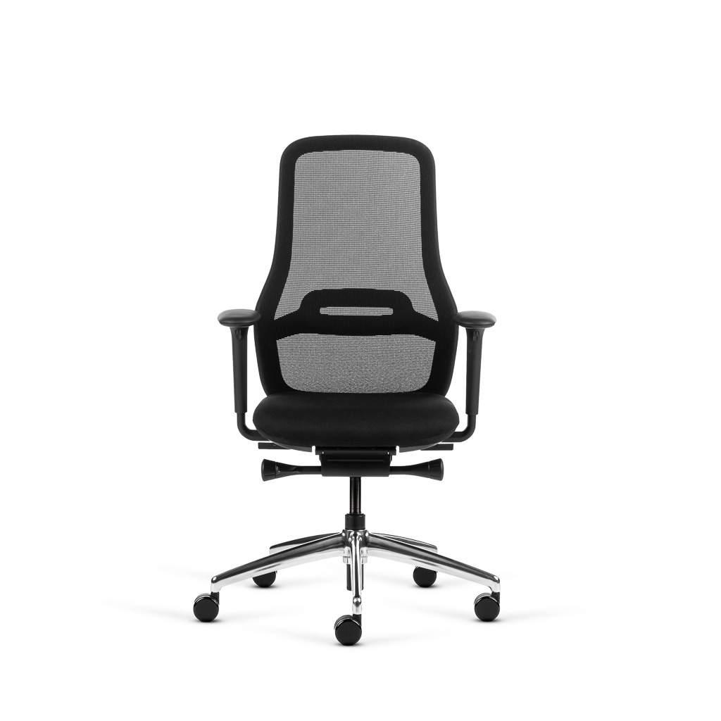 Manuelle Synchronmechanik, verstellbare Lendenwirbelstütze, 4D-Armlehnen und anpassbare Kopfstütze bieten optimalen Komfort.