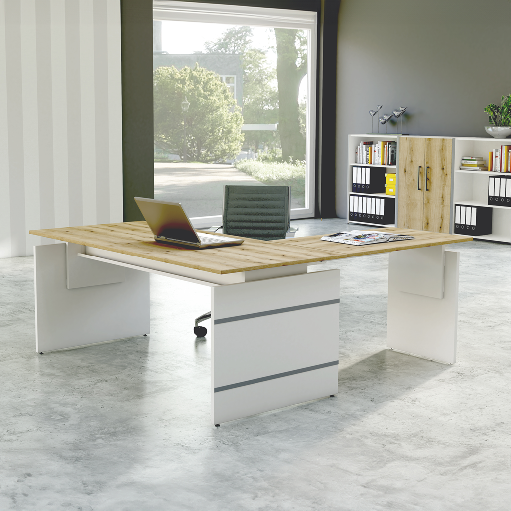Eckschreibtisch Oveta mit Wangengestell