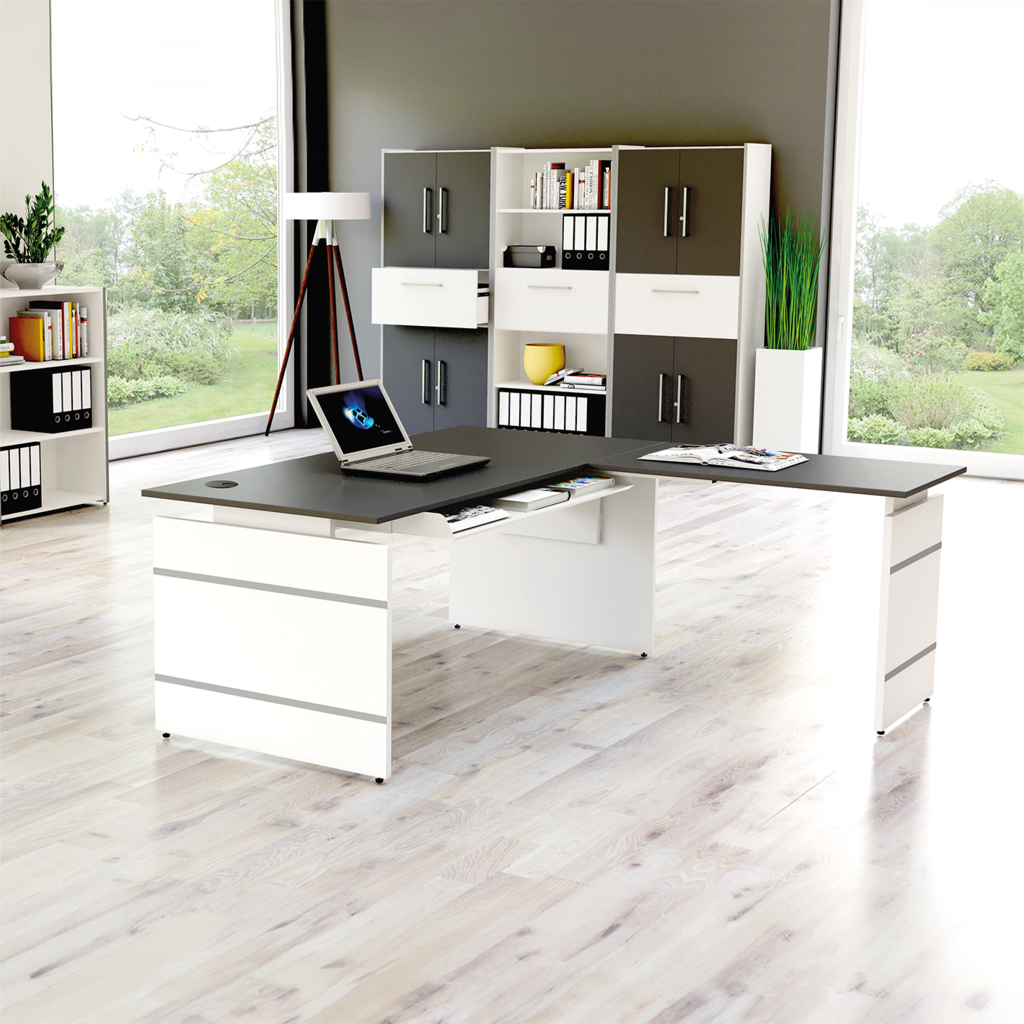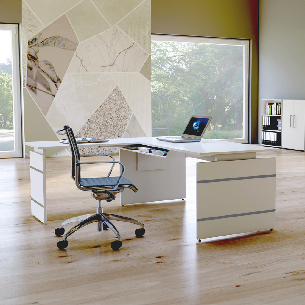 - edler Eckschreibtisch mit Edelstahl-Akzenten