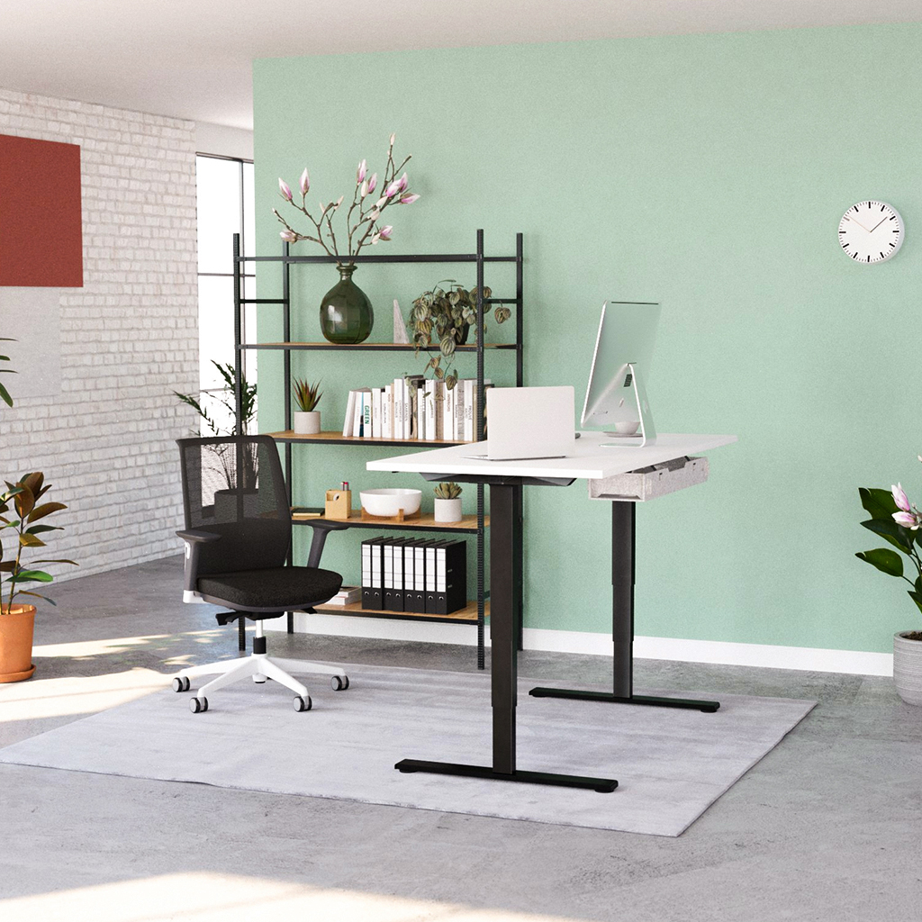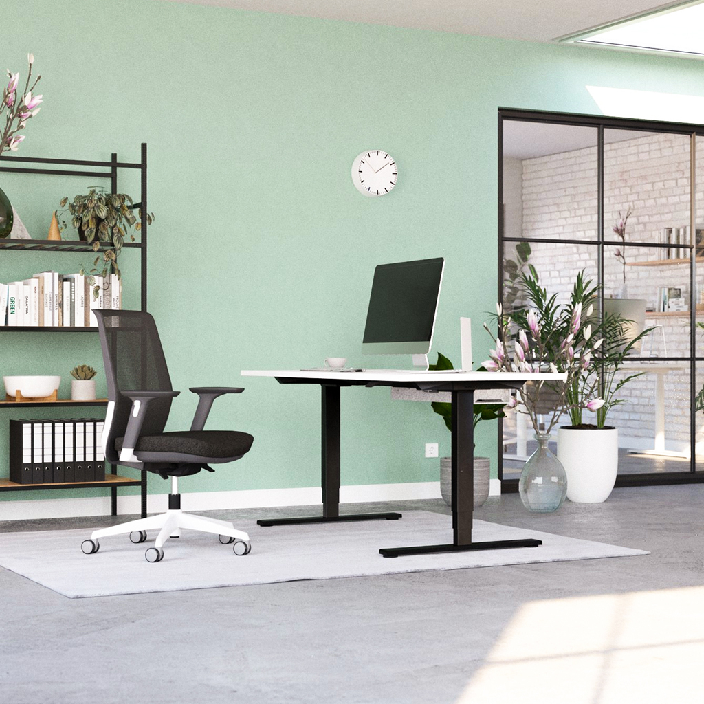 - Höhenverstellbarer Premium-Schreibtisch, Bürodrehstuhl & Kabelmanager