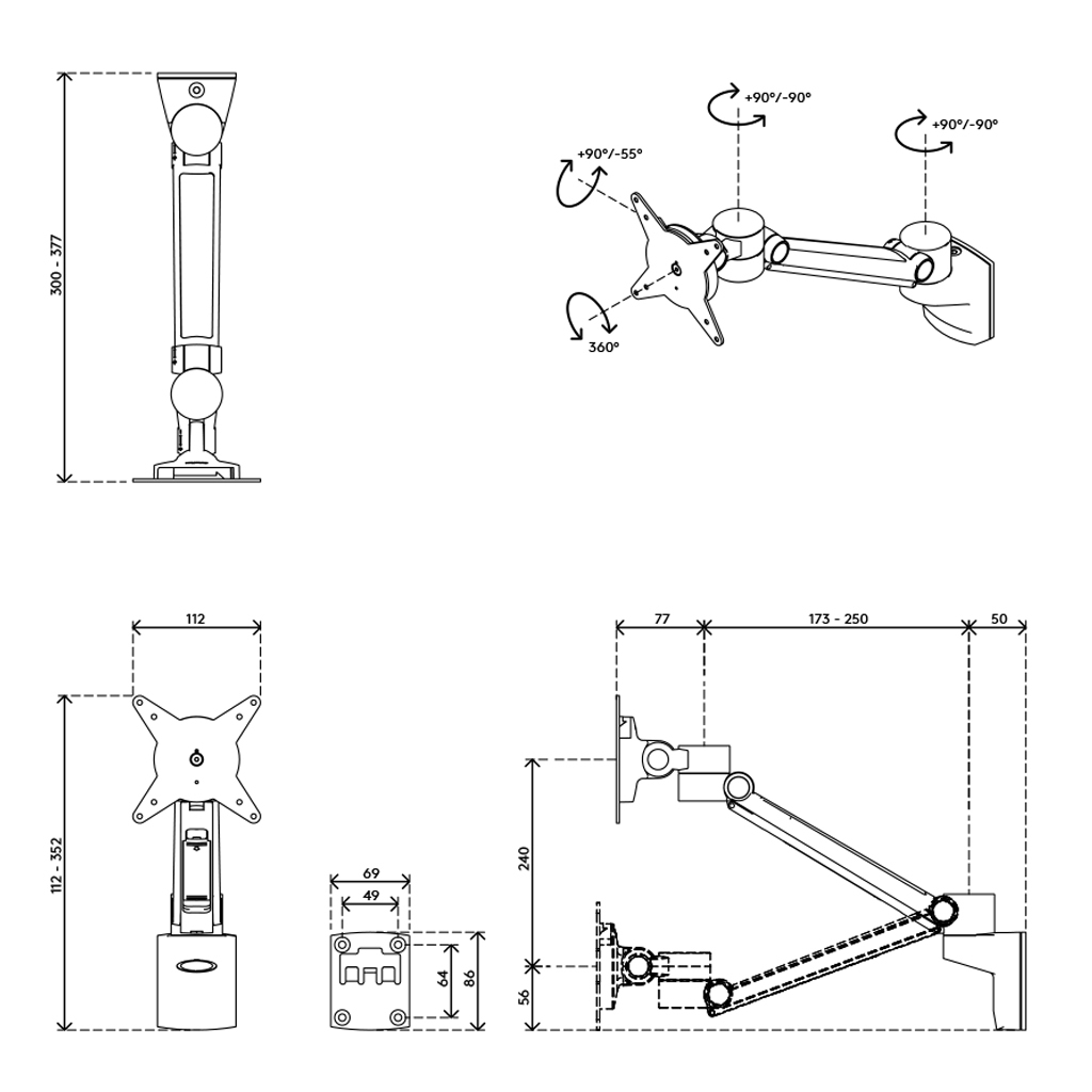 Monitorarm Viewlite + für Wandmontage Dataflex