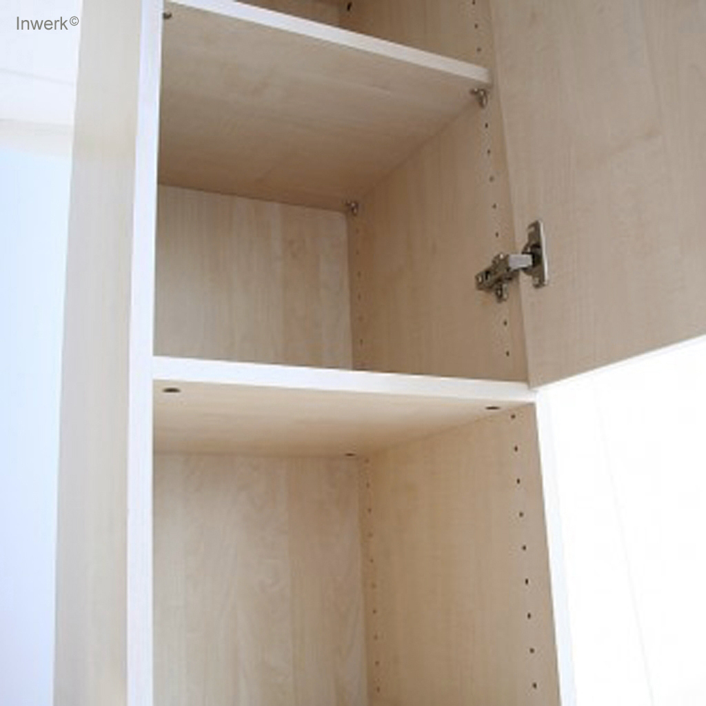 • Schiebetüren: Laufen auf Schienen vor dem Schrank, sparen Platz davor, da sie nicht in den Raum ragen. Jedoch ist immer nur ein Teil des Schrankes offen, die andere Seite wird durch die Schiebetüren verdeckt.