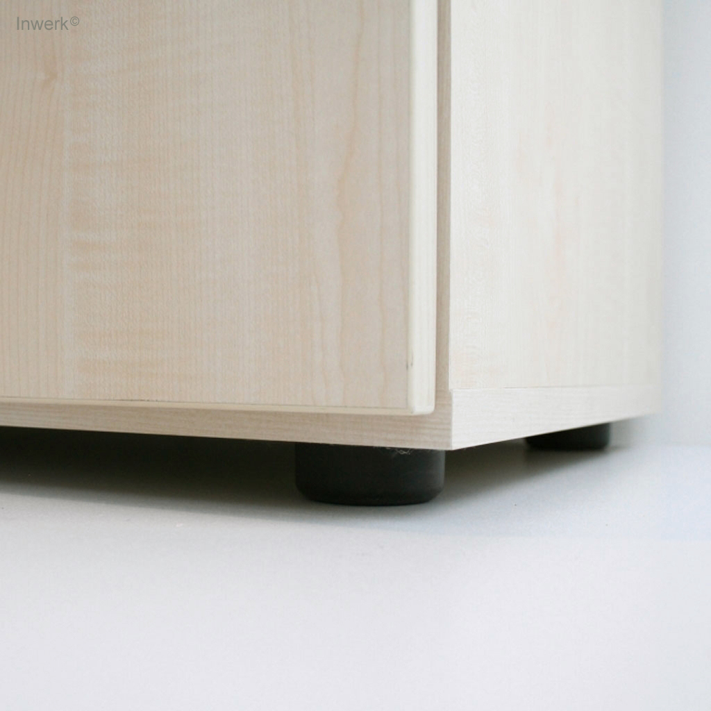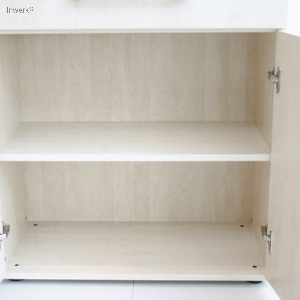 • Rollladen: Flexible Kunststoff-Rollladen, die sich vertikal öffnen (nach oben oder unten rollend) und in einem Rollladenkasten rollen. Sie sparen Platz seitlich und vor dem Schrank.
