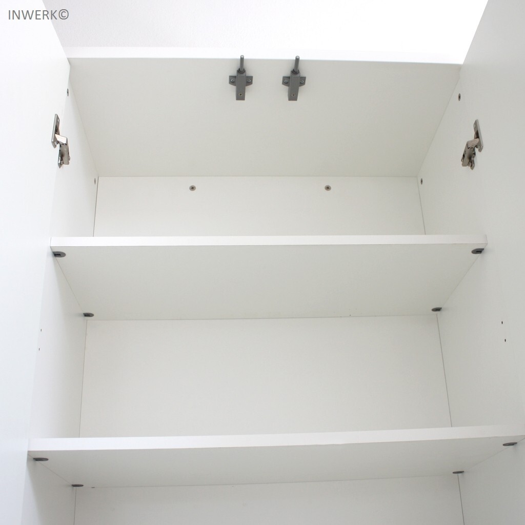 • Rollladen: Flexible Kunststoff-Rollladen, die sich vertikal öffnen (nach oben oder unten rollend) und in einem Rollladenkasten rollen. Sie sparen Platz seitlich und vor dem Schrank.