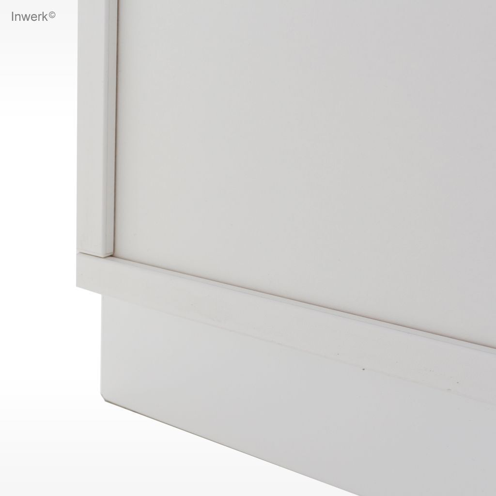 • Rollladen: Flexible Kunststoff-Rollladen, die sich horizontal öffnen (nach oben oder unten rollend) und in einem Rollladenkasten rollen. Sie sparen Platz seitlich und vor dem Schrank.