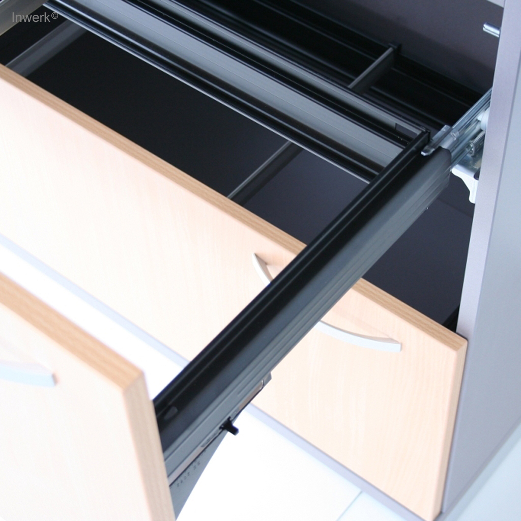 • Querrollladen: Flexible Kunststoff-Rollladen, die sich horizontal öffnen (zur Seite rollend). Sie sparen Platz seitlich und vor dem Schrank. Ideal für schmale Gänge.