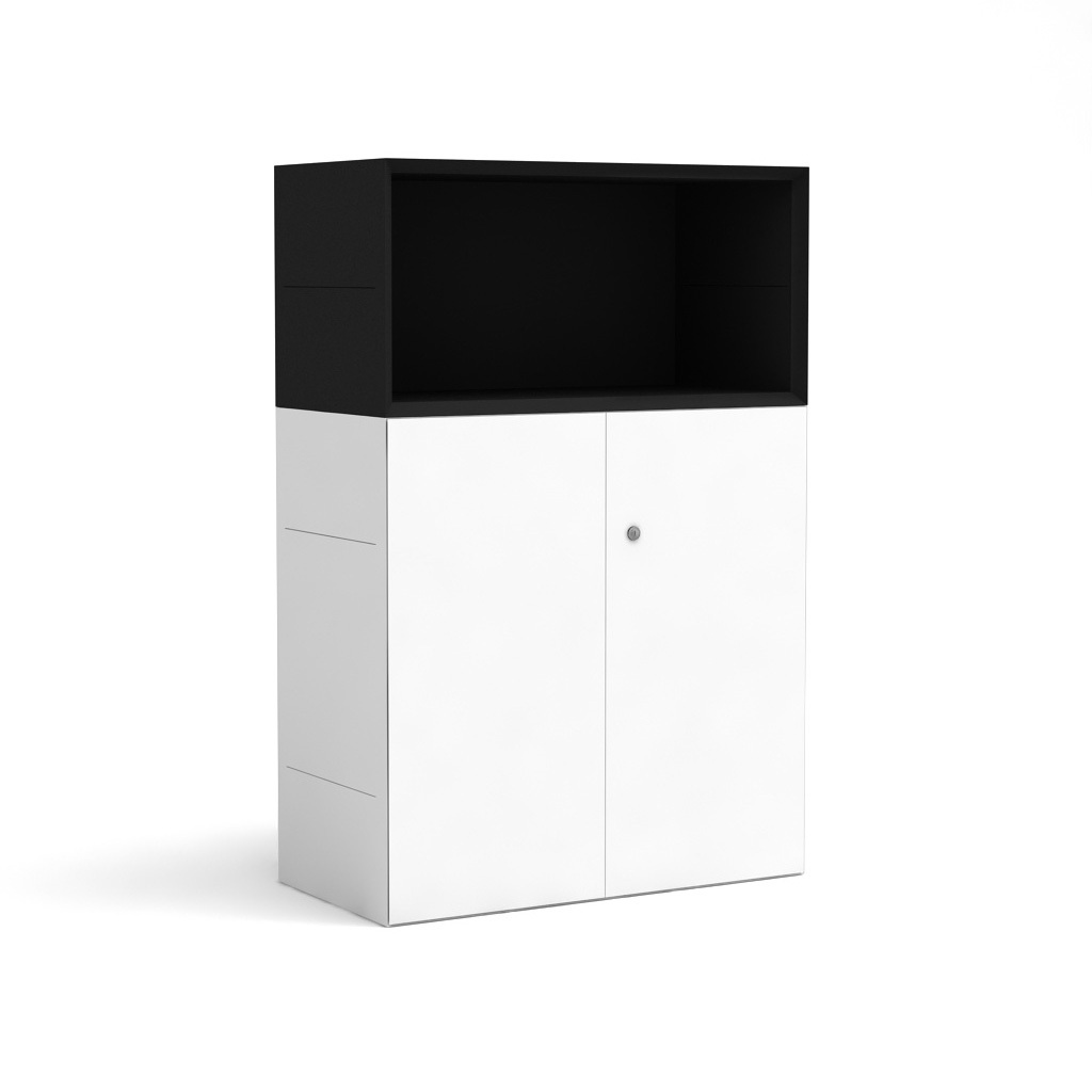 Sideboard Masterbox® B 800 x H 1200 mm 3 OH offenes Fach, weiß-schwarz