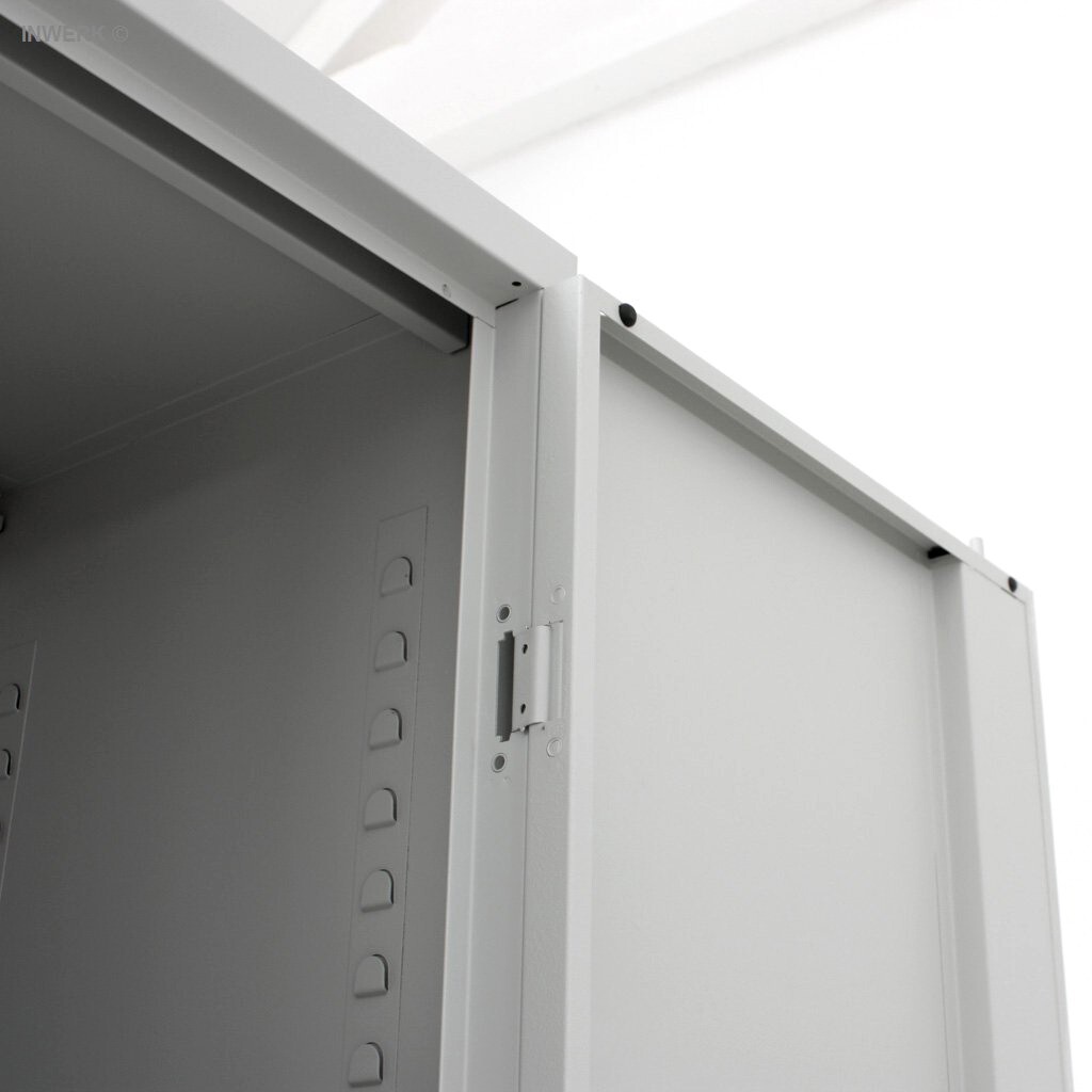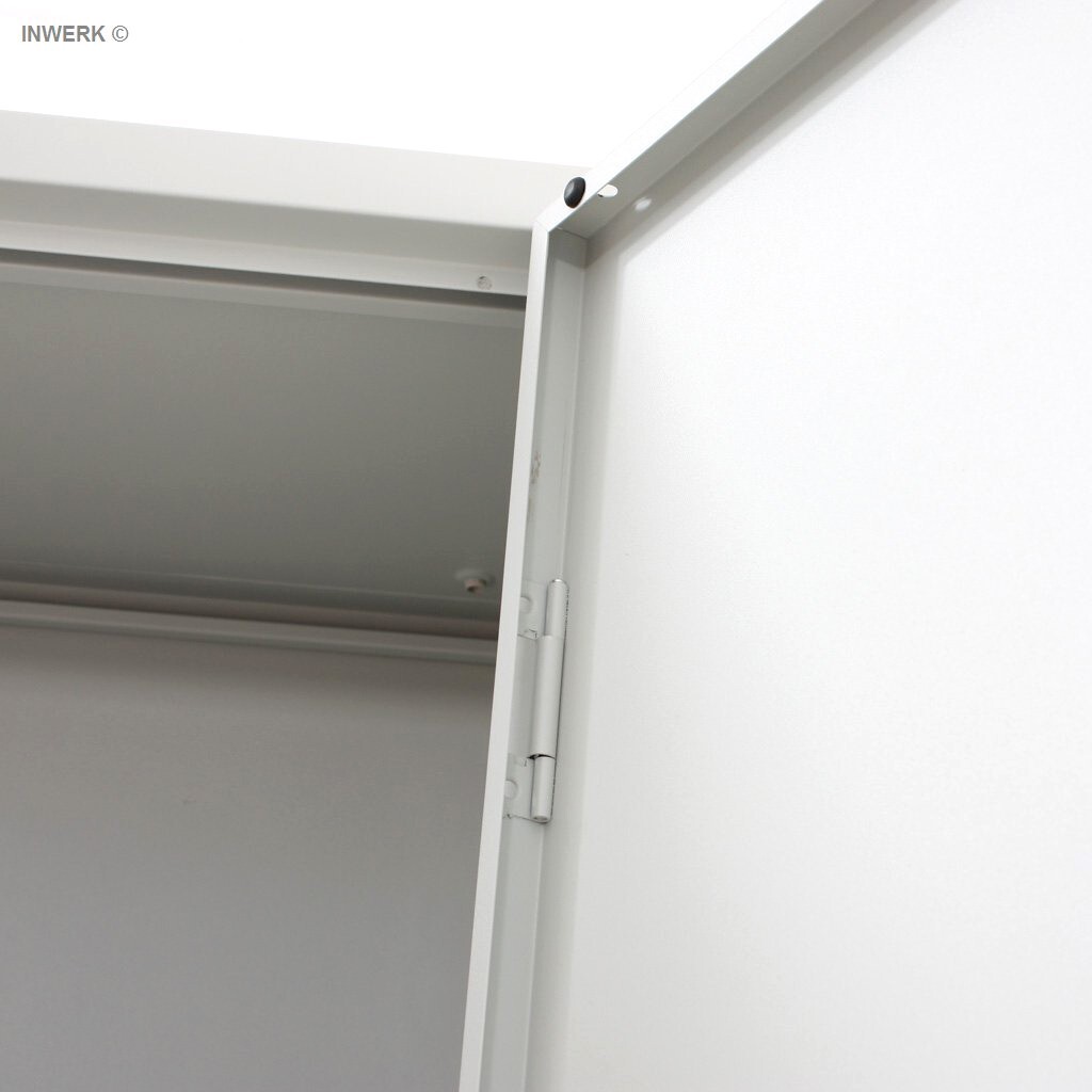 • Rollladen: Flexible Kunststoff-Rollladen, die sich vertikal öffnen (nach oben oder unten rollend) und in einem Rollladenkasten rollen. Sie sparen Platz seitlich und vor dem Schrank.
