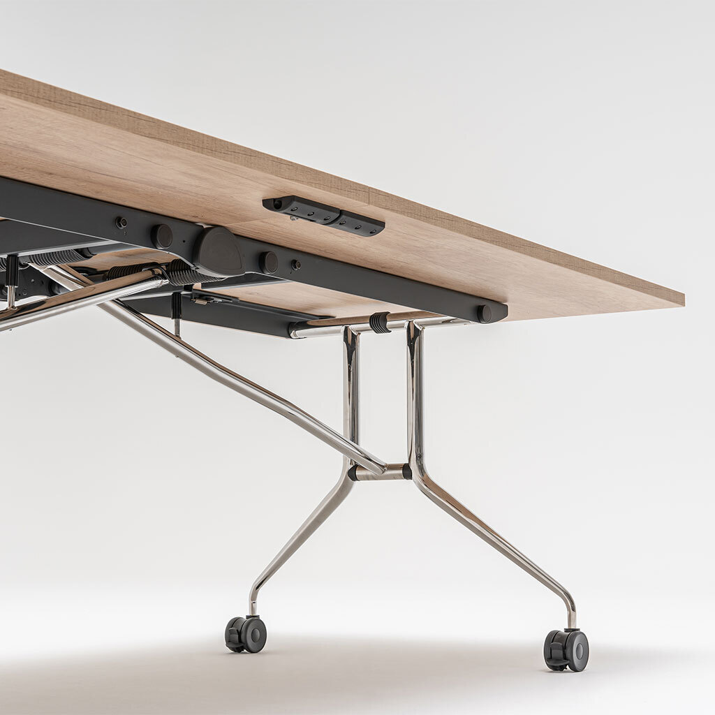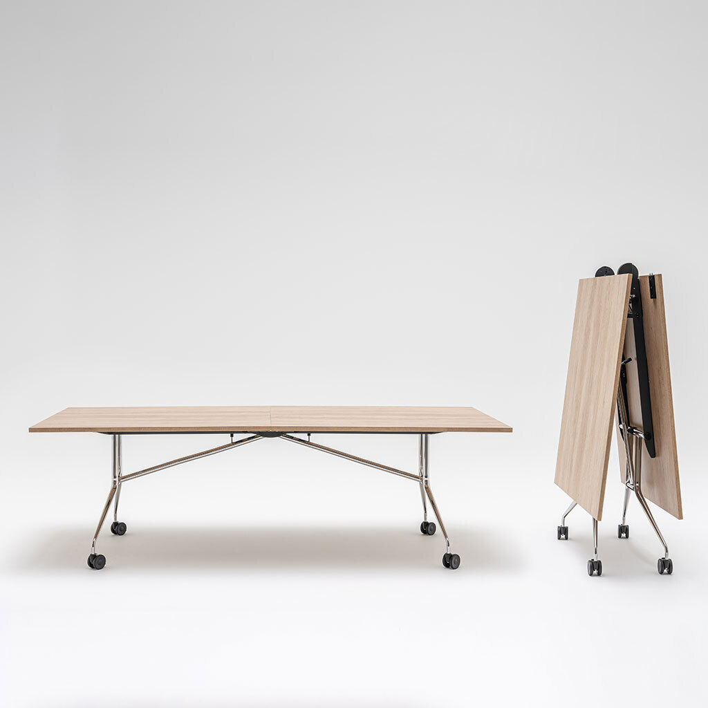 - kompakter Konferenztisch (klapp- und rollbar)