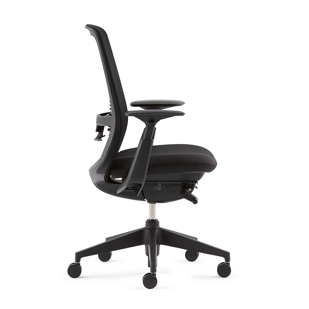 MECHANIK SYNCHRO: Manuell einstellbarer Gegendruck. Die Sitz- und Rückenlehne bewegen sich synchron, um eine ergonomische Sitzhaltung zu fördern.