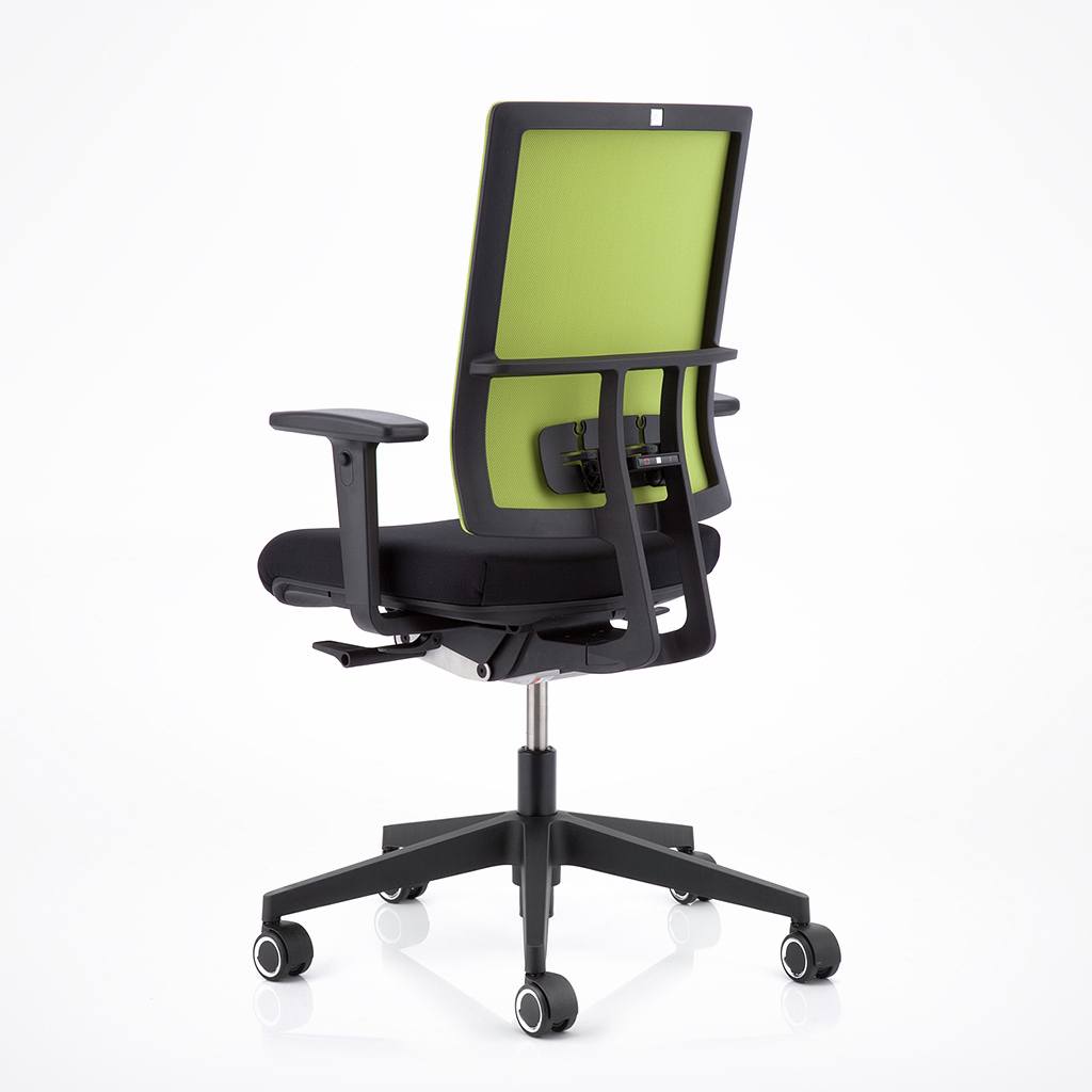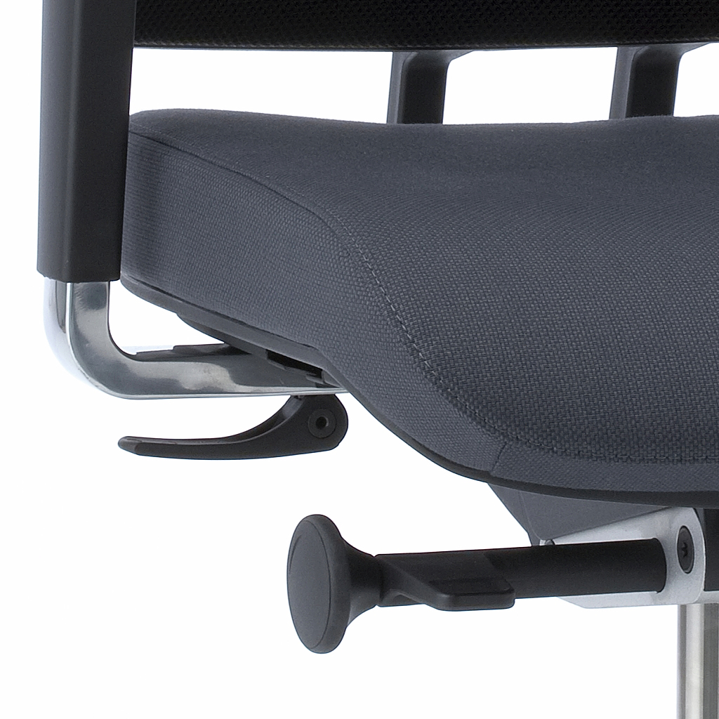MECHANIK SYNCHRO: Manuell einstellbarer Gegendruck. Die Sitz- und Rückenlehne bewegen sich synchron, um eine ergonomische Sitzhaltung zu fördern.