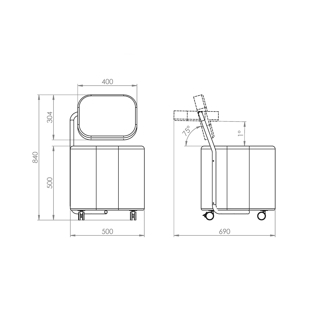 • Rückholmechanik (Höhe 445 mm nicht verstellbar)