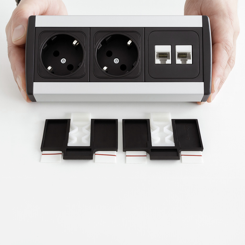 Klebebefestigung für Schreibtisch Steckdose Focus